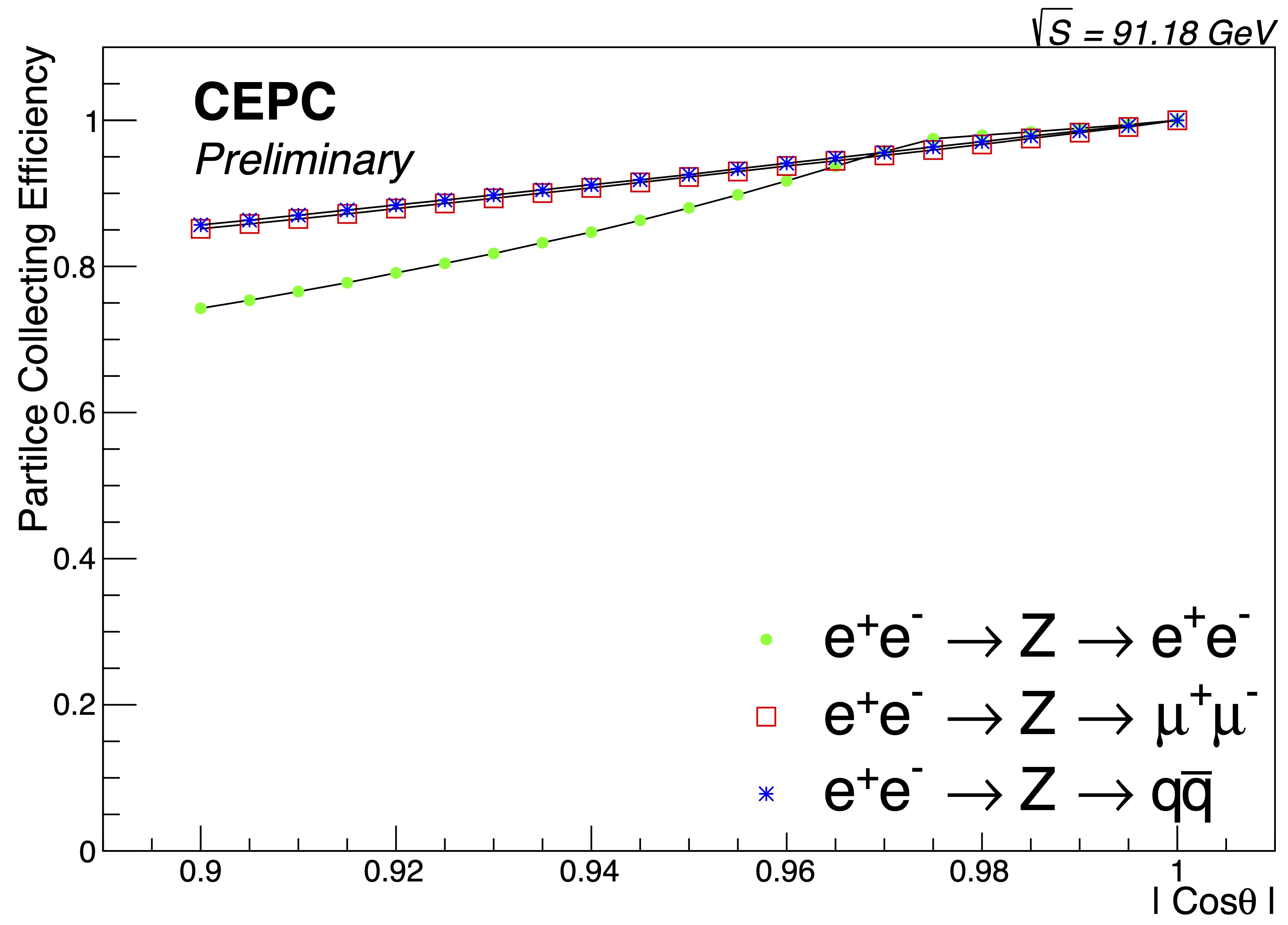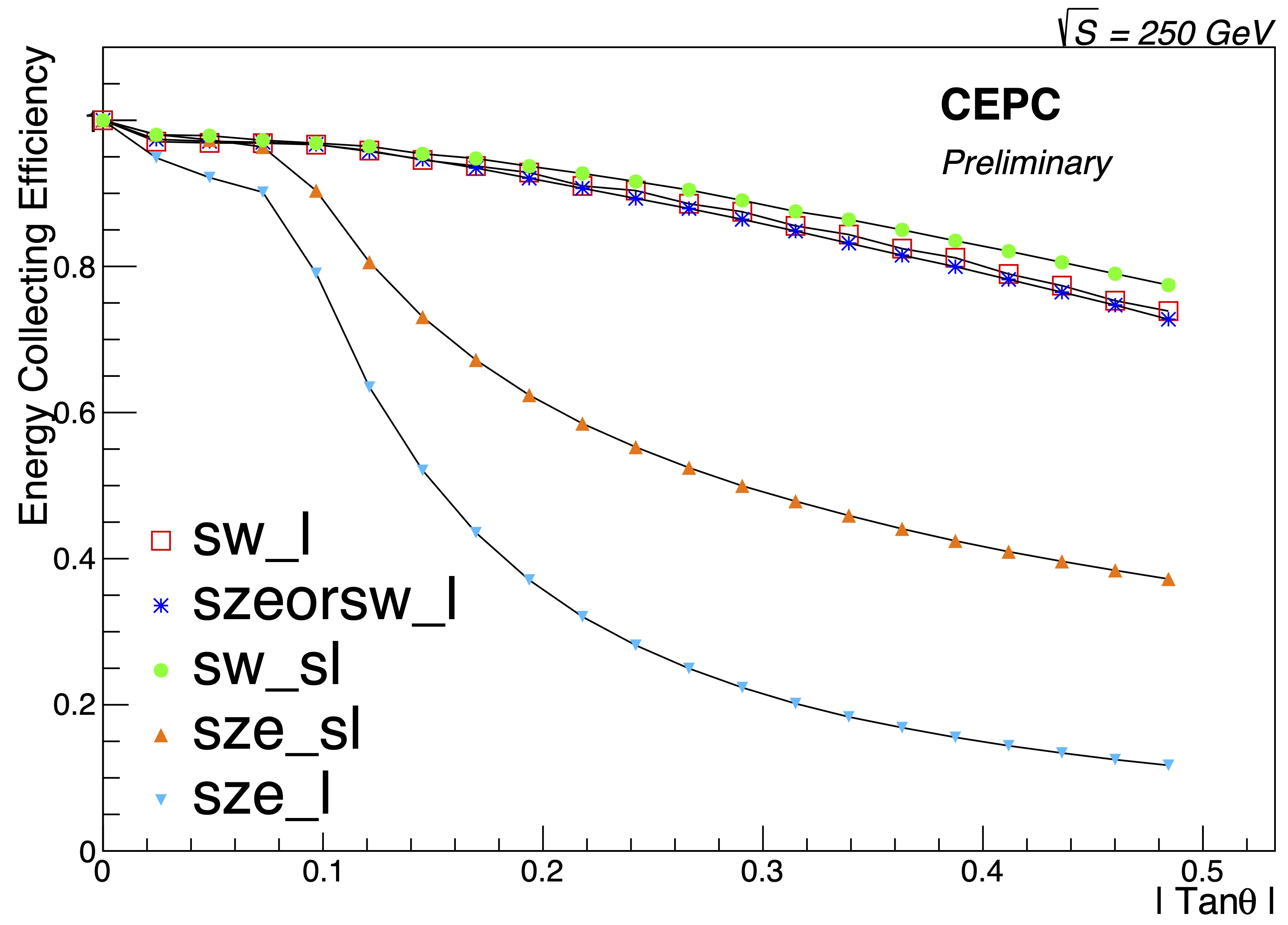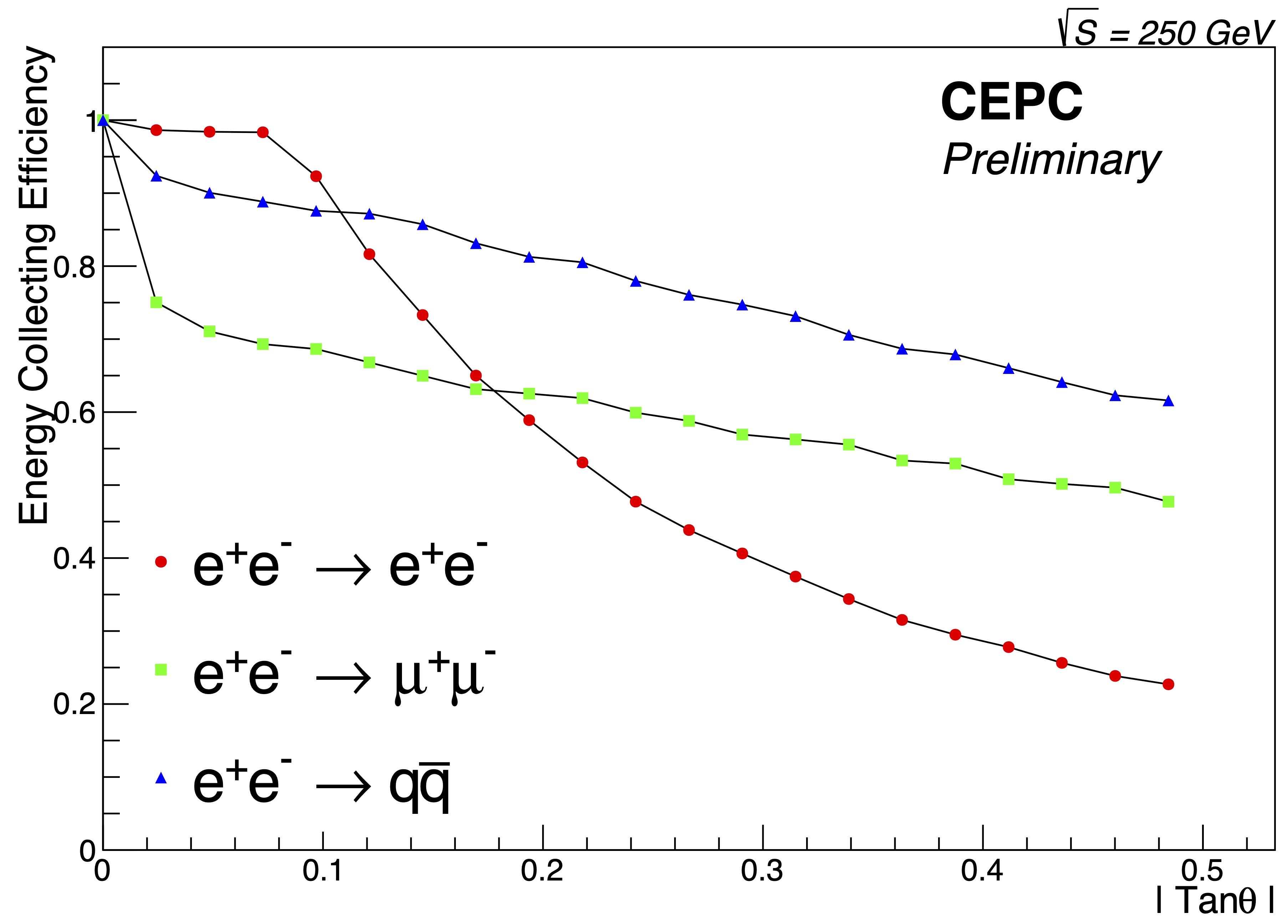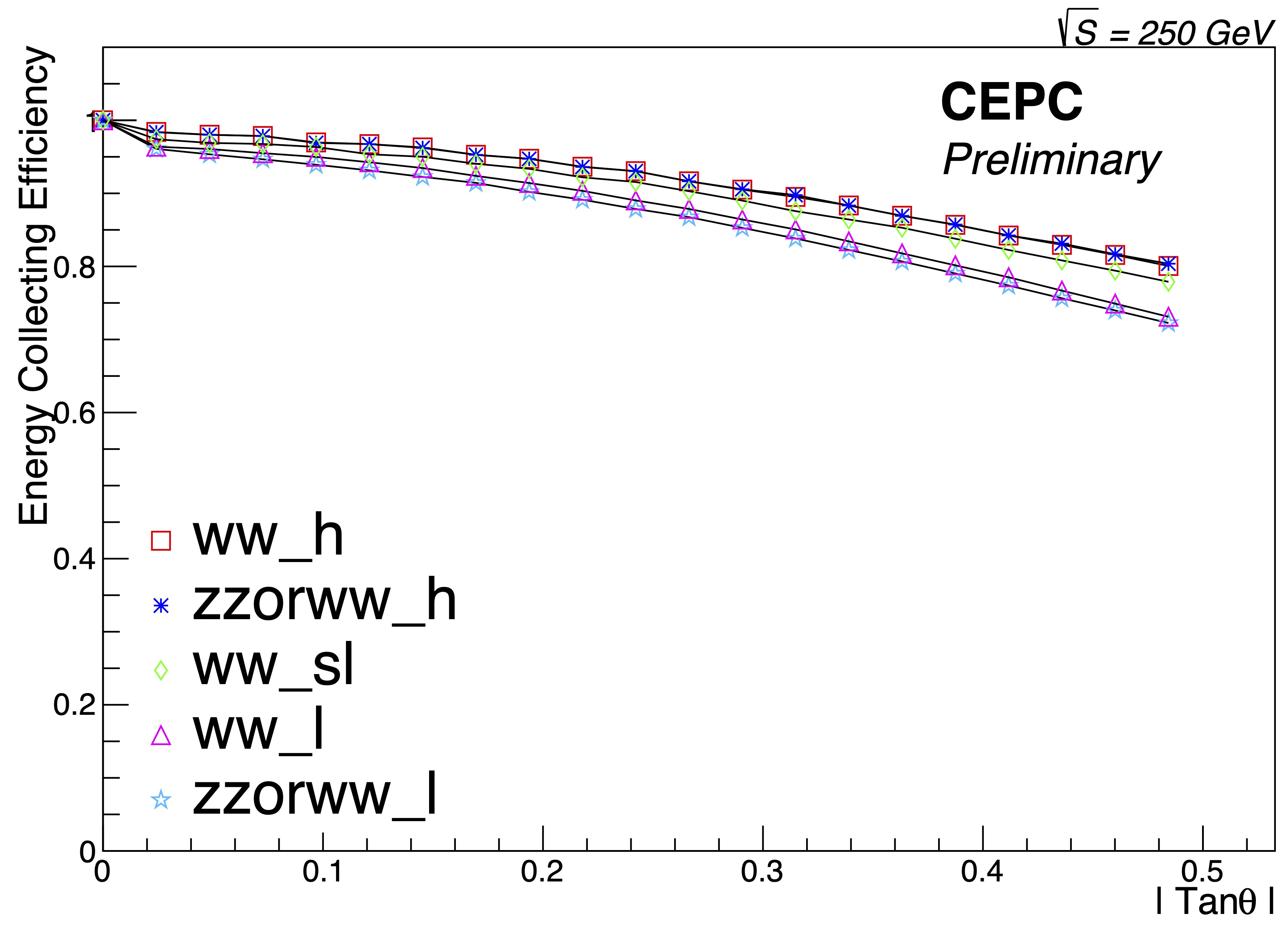 Particle collective efficiency refers to the ratio of events where all visible particles fall within the detector’s acceptance to the total number of events. On the other hand, energy collective efficiency represents the ratio of the energy of visible particles within the detector’s acceptance to the total energy of all visible particles.