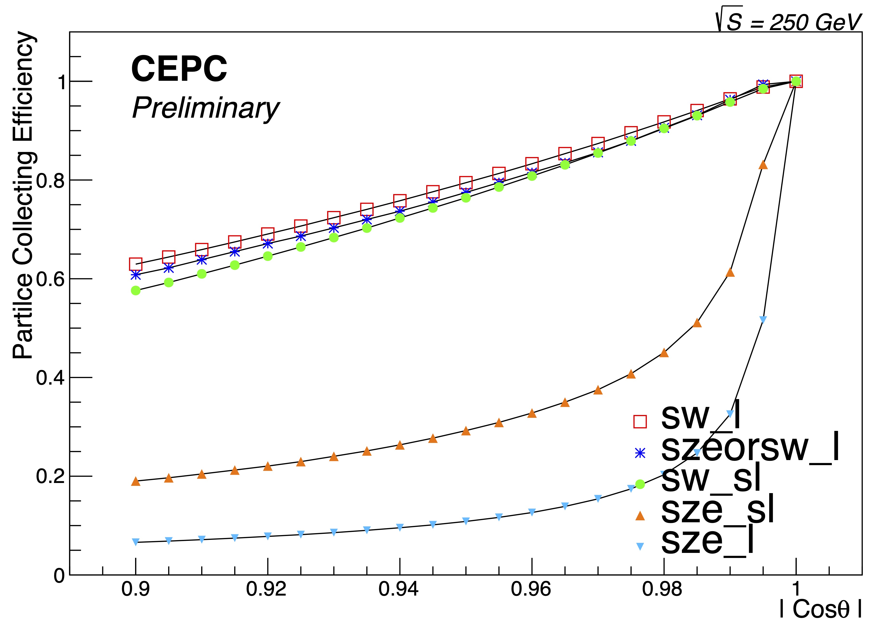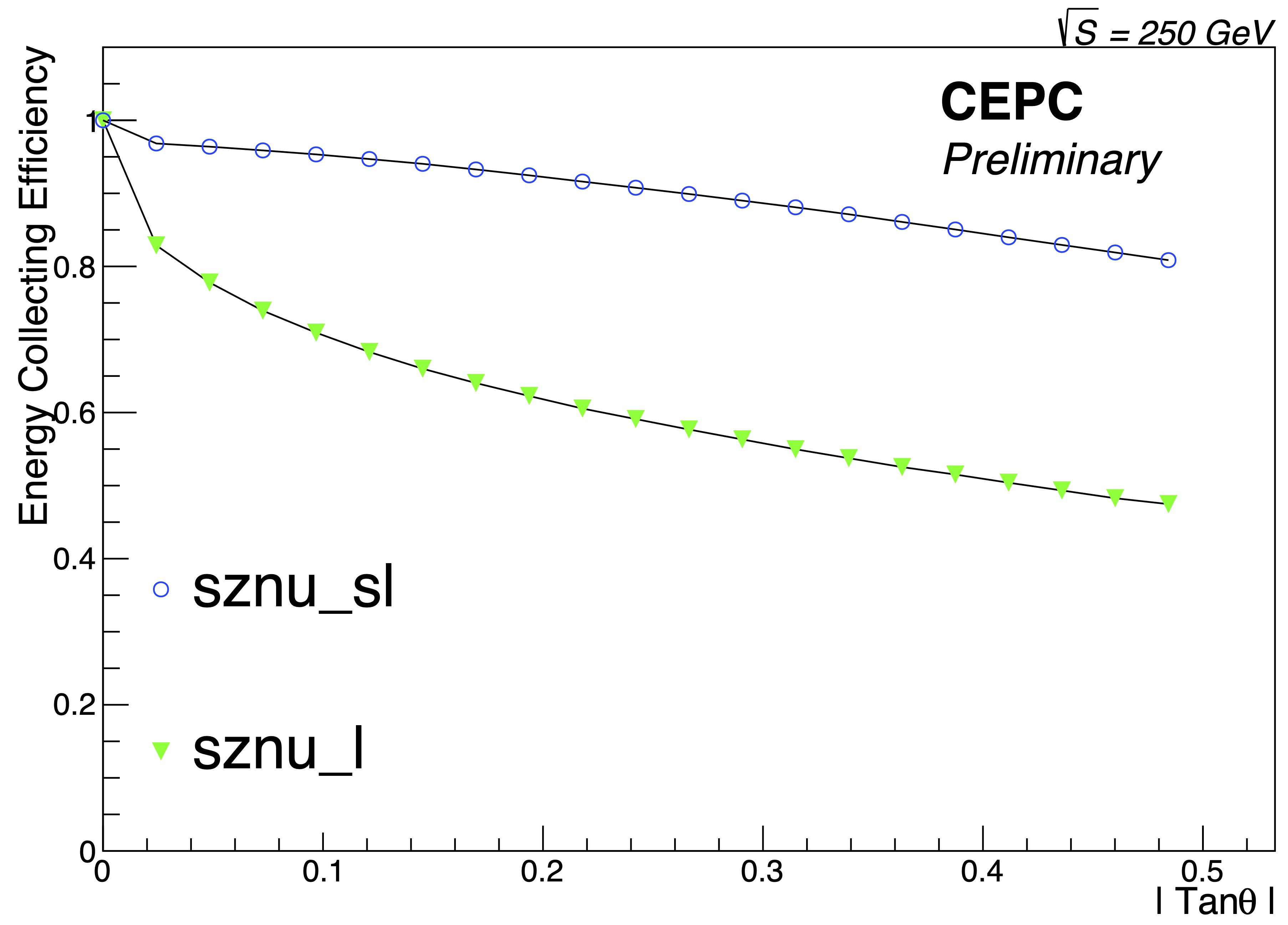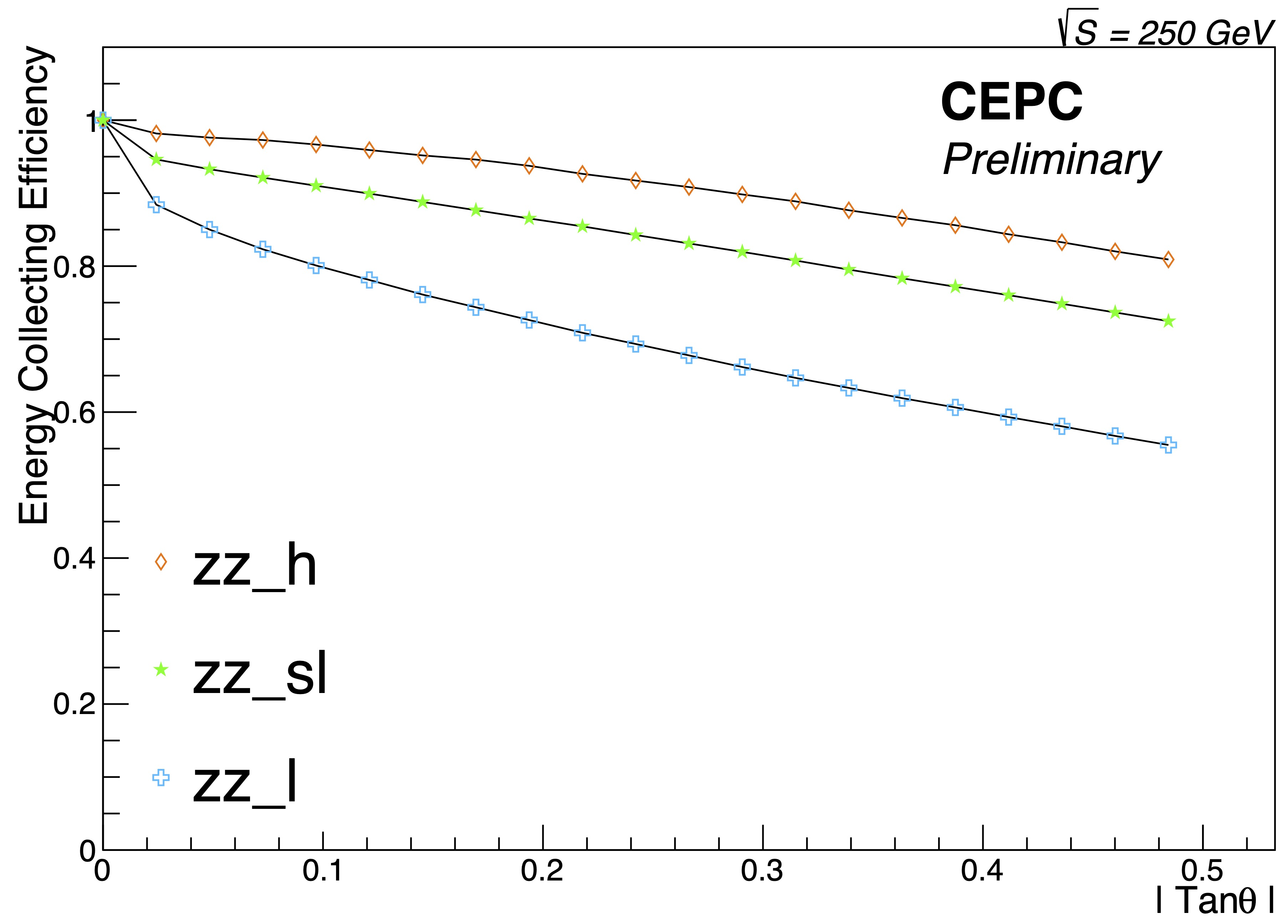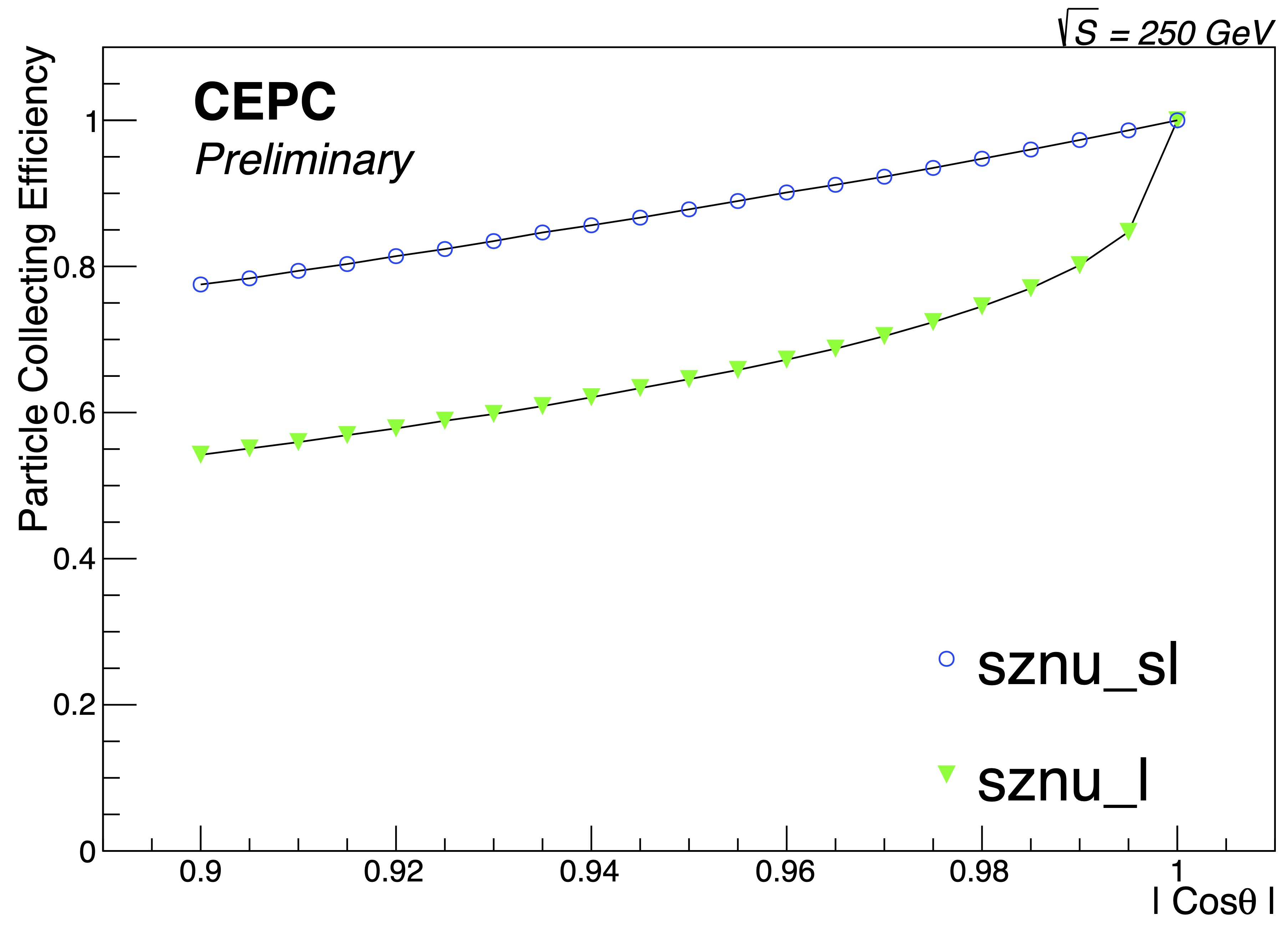 Particle collective efficiency refers to the ratio of events where all visible particles fall within the detector’s acceptance to the total number of events. On the other hand, energy collective efficiency represents the ratio of the energy of visible particles within the detector’s acceptance to the total energy of all visible particles.